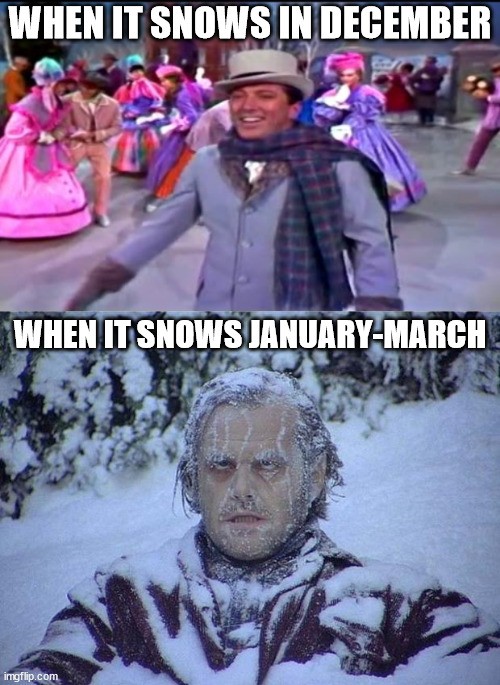 Yeah, so, it rained yesterday, rain turned to freezing rain turned to sleet turned to snow. So there's a sheet of ice under that "wonderful magic happy marshmallow snowland". But of course, my foot found the ONE unfrozen mud puddle hidden under the snow. "Watch out for that first step it's a doozie!"