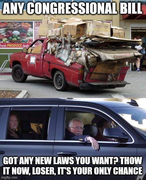 I can't draw so this is my political cartoon in a stitched together meme. Not aimed at any specific person or party, really a jab at all of Congress, the "big beautiful bill" has been bloated and altered so many times since it's original intent and it is mess and this is the behavior of Congress for 15, 16, 17+ years, they act like they can't pass separate bills, separate policies, that if anyone wants anything it has to be bundled up in a monstrosity. People complain about the inefficiency and slowness of Congress, that's by design. You don't want a speedy Congress, you'd lose more freedoms a lot faster. It's very rare any Congress, Legislature, or city council ever repeal laws or let them expire and when they do there's no fanfare or attention. But when new laws pass and go into effect, usually on January 1st and July 1st, those processes are hidden and then announced by the media on like December 27th and June 27th "Oh, BTW, new laws restricting your freedoms go into effect on the 1st, so watch out!" Ugh! 🤮